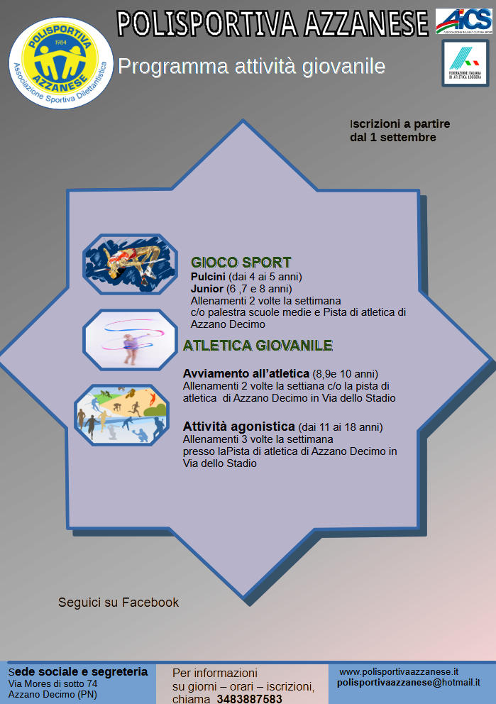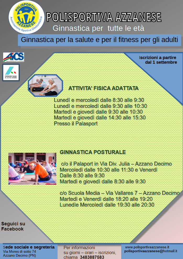 Di seguito trovate il programma delle attività giovanili e le varie attività di Ginnastica per la Salute e il Fitness.